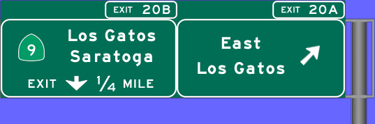 Exit 20A is an extension of Hwy 9 east and ends at Los Gatos Blvd.